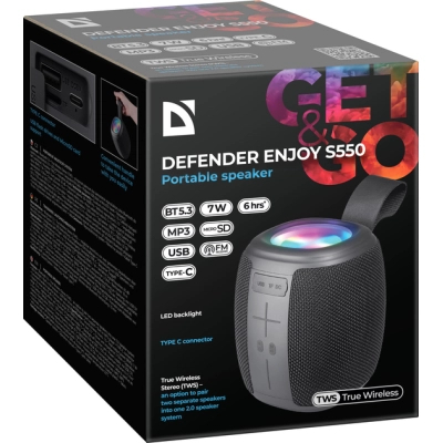 Defender Enjoy S550 Bluetooth Black - це гармонія інноваційних технологій, витонченої конструкції та бездоганного звуку, яка зробить вашу звукову подорож дійсно незабутньою. Відкрийте для себе нові горизонти слухового задоволення з цією неповторною акустичною системою, незалежно від того, де ви знаходитесь.