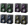 LED-підсвічування з 4 режимами додає сучасного вигляду та створює атмосферу, при потребі його можна вимкнути. Довжина кабелів дозволяє зручно розташувати сателіти на столі (до 1,3 м між динаміками). Ідеальний вибір для домашнього використання – для роботи, навчання чи розваг.