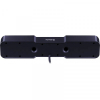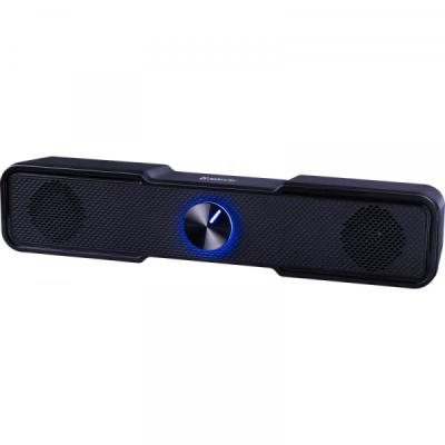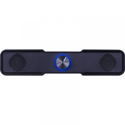 Модель оснащена підсвіченим регулятором гучності, зручно розташованим на передній панелі. Він також виконує функцію вимикача живлення, що додає зручності у щоденному користуванні. Живлення здійснюється через USB, тому не потрібно підключення до електромережі — достатньо USB-порту на комп’ютері. Аудіосигнал передається через стандартний аудіороз’єм, оскільки саундбар не має вбудованої звукової карти.