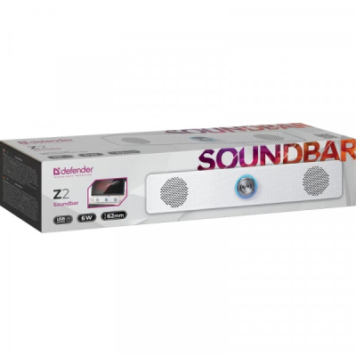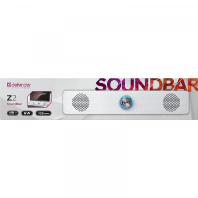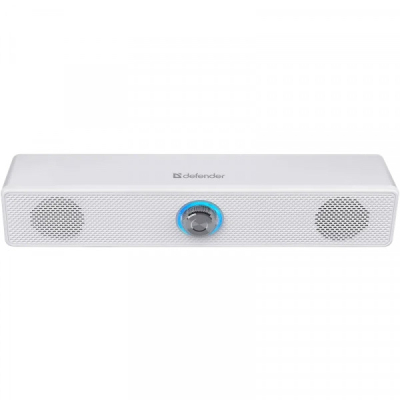 Defender Soundbar Z2 White - Компактний саундбар з нековзними ніжками для монітора комп'ютера. Регулятор гучності з підсвічуванням зручно розташований на передній панелі.