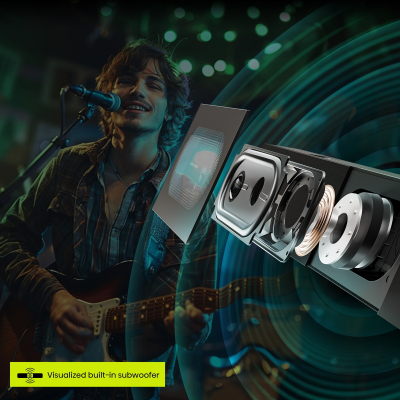 - Вбудований сабвуфер і 240 Вт потужності для глибоких басів і чистого звуку.