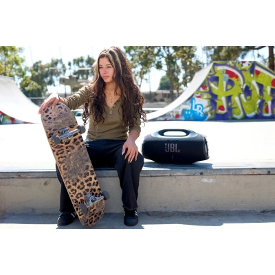 JBL Boombox 4 звучить потужніше й краще, ніж будь-коли, але водночас — сюрприз! — він став легшим, завдяки чому простіше створювати атмосферу будь-де.