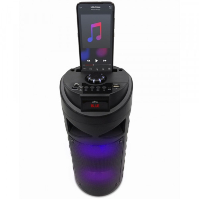 Вмикайте функцію караоке та співайте улюблені пісні (мікрофон не входить у комплект постачання). Розміщуйте смартфон на спеціальну підставку, розташовану на верхній панелі корпусу, та весело проводьте час з друзями.
