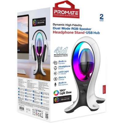 Додай ще більше функціональності та стилю у свій ігровий простір. Promate Alpha-X —  колонка, хаб, мікрофон, та підставка для навушників в одному пристрої, стане яскравим акцентом на столі.