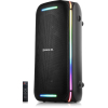 - Заливне RGB-підсвічування навколо динаміків та по боках робить атмосферу ще яскравішою — справжнє шоу в кожному треку.