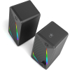 Стильна акустична система з бездоганним звуком світлодіодним підсвічуванням. На верхній панелі сателіту присутня сенсорна поверхня для ввімкнення/вимкнення підсвічування. На фронтальній панелі регулятор для регулювання гучності та ввімкнення/вимкнення живлення.