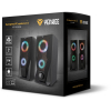 Елегантні стереодинаміки 2.0, надкомпактні розміри, живлення через стандартний USB інтерфейс. Ідеальний вибір для посилення звуку з ноутбука, нетбука або ПК. Легкий доступ до налаштувань гучності та увімкнення/вимкнення живлення за допомогою кнопки керування на передній панелі. Аудіосигнал передається через стандартний аудіороз'єм 3,5 мм.