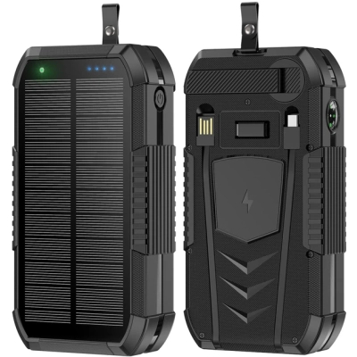 AURA NRG-40SE ARM SOLAR 40000 mAh Wireless Dynamo charging, це потужний павербанк, оснащений по максимуму всім необхідним, для автономного перебування без доступу до електромережі. NRG-40SE ARM SOLAR 40000 mAh Wireless Dynamo charging, має сонячну панель для підзаряджання від енергії сонячного світла, вбудовану динамо-машину для ручної підзарядки, та функцію бездротової зарядки, потужний LED-ліхтарик та механічний вбудований компас.