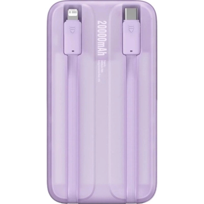 Ємність - 20000 mAh, електрохімічна система - Li-pol, інтерфейси підключення (вихід) - USB Type-C, USB, вихідний струм - 1.5 A, 2.4 A, 2.22 A, 2.25 A, розмір - 132.3 x 70 x 35.9 мм, матеріал корпусу - пластик, Колір - фіолетовий