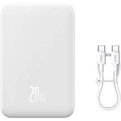 Ємність - 20000 mAh, електрохімічна система - Li-pol, Джерело заряду батареї - USB, інтерфейси підключення (вихід) - USB Type-C, вихідний струм - 3 A, Колір - білий