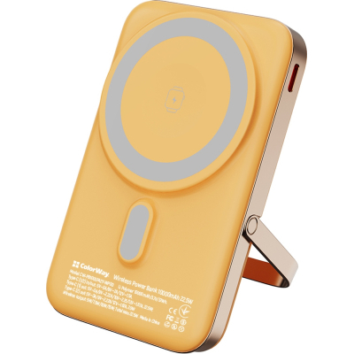 Батарея універсальна ColorWay 10 000 mAh PD/22.5W, 15W MagSafe & Watch Wireless Amber (CW-PB100LPA2Y-WPDD)
