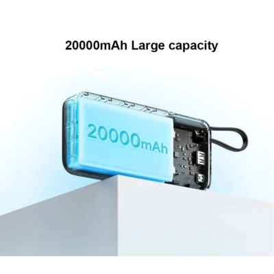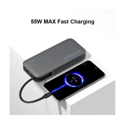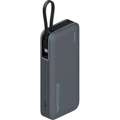 Ємність - 20000 mAh, електрохімічна система - Li-pol, Джерело заряду батареї - USB Type C, інтерфейси підключення (вихід) - USB, Максимальна вихідна потужність, Вт - 55, вихідний струм - 1.5 A, 3 A, 2.5 A, 2 A, розмір - 150 х 70 х 25 мм, матеріал корпусу - пластик, вага - 420 г, Колір - сірий