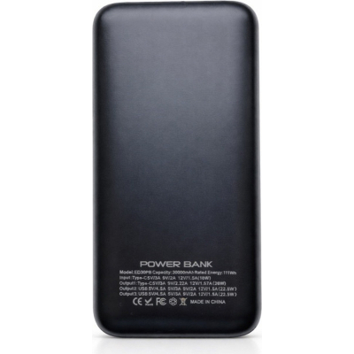 Ємність - 30000 mAh, електрохімічна система - Li-pol, Джерело заряду батареї - USB Type C, інтерфейси підключення (вихід) - USB Type-C, 2 х USB, Максимальна вихідна потужність, Вт - 22.5, вихідний струм - 1.5 A, 3 A, 2 A, розмір - 135 х 70 х 40 мм, матеріал корпусу - Вогнетривкий ABS пластик, вага - 585 г, Колір - чорний