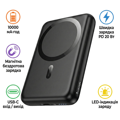 Повербанк Hoco J141 Grace PD20W Magnetic (10000 mAh) — це компактний портативний зовнішній акумулятор із підтримкою магнітної бездротової зарядки, призначений для щоденного використання зі смартфонами та іншими портативними пристроями.