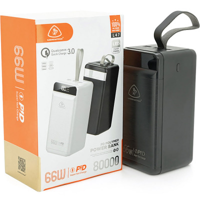 LIONPATTON L47 80000 мА·год — це надійний і функціональний powerbank з дуже високою ємністю і універсальними портами, який забезпечує стабільну зарядку ваших пристроїв в будь-яких ситуаціях, де важлива автономність і доступ до енергії