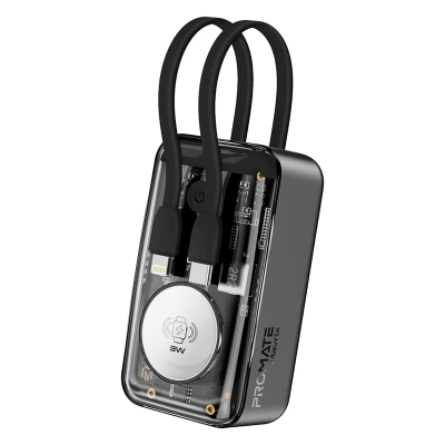Promate Mavrix - ультракомпактний і багатофункціональний повербанк з USB-C Power Delivery портом, магнітним кріпленням для Apple Watch і вбудованими USB-C і Lightning кабелями.