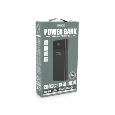 Ємність - 20000 mAh, електрохімічна система - Li-pol, Джерело заряду батареї - USB, інтерфейси підключення (вихід) - USB Type-C, 2 х USB, вихідний струм - 1.5 A, 3 A, 2.5 A, 1 A, 2 A, матеріал корпусу - пластик, вага - 410 г, Колір - чорний