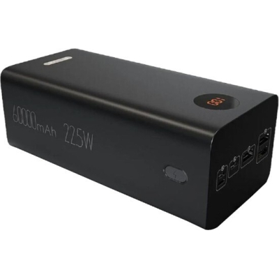 Ємність - 60000 mAh, електрохімічна система - Li-pol, Джерело заряду батареї - USB, інтерфейси підключення (вихід) - 3 х USB, Lightning, 2 x USB Type-C, вихідний струм - 5 A, 3 A, 2.4 A, розмір - 180 x 84 x 66 мм, вага - 1300 г, Колір - чорний