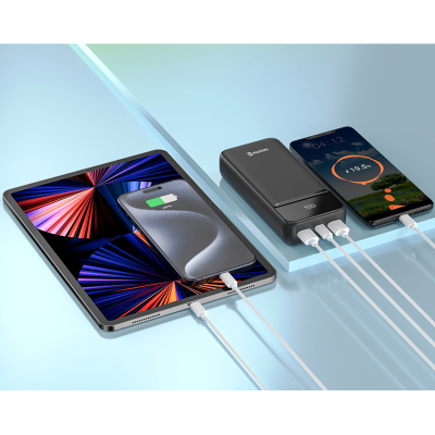 Повербанк підтримує швидку зарядку потужністю до 22.5 Вт, завдяки чому енергія передається швидко та безпечно. Оснащений декількома портами — USB-A та USB-C, що дозволяє заряджати одразу кілька пристроїв різних типів.