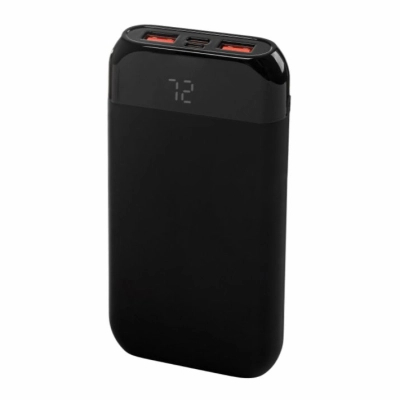 Повербанк має 2 USB порти, Type-C Input і Micro-USB Input. Кабель Type-C йде в комплекті. Модель обладнана гумовим покриттям для захисту корпусу від ударів. Ємність повербанка – 10000 mAh. Наявність заряду пристрою та його кількість у відсотках показує вбудований дисплей. Джерелом живлення є літій полімерна батарея.
