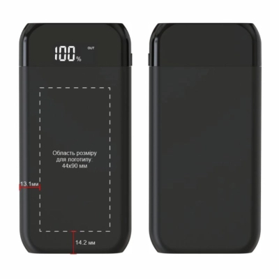Повербанк додатково (опціонально) підтримує протокол швидкого заряджання USB PD (Power Delivery). Заряджання за технологією PD з потужністю до 22,5 Вт. Зарядний пристрій відрізняється компактними розмірами – 145 х 71 х 17,5 мм, його вага – 242 г. Виріб може стати оригінальним сувеніром з нанесеним логотипом. При застосуванні гравіювання присутній ефект підсвічування.