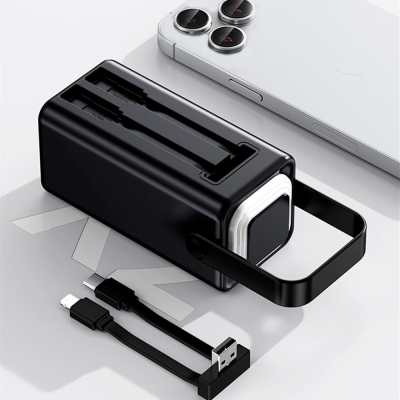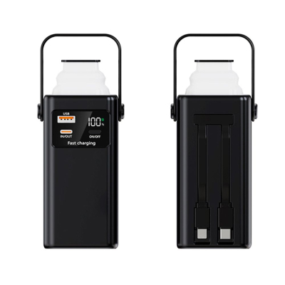 Повербанк оснащений цифровим дисплеєм, який точно відображає рівень заряду, дозволяючи контролювати залишок енергії без здогадок. Вбудована кемпінгова лампа розширює функціональність пристрою та стане корисною під час кемпінгу, у наметі або в умовах відсутності освітлення. Для зручного транспортування передбачена міцна ручка, що особливо актуально в дорозі.