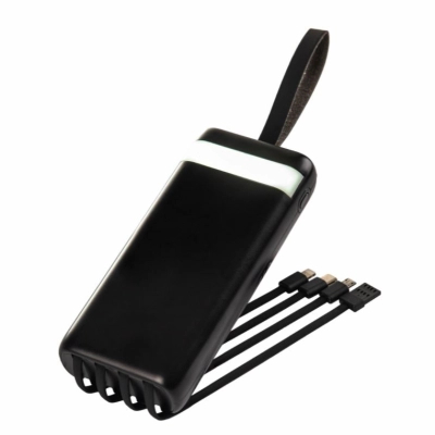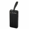 Зручний ремінець забезпечить користувачеві комфорт під час транспортування повербанку, надасть можливість закріпити на поясі чи рюкзаку. Корпус пристрою реалізований із заокругленими ребрами та приємною на дотик текстурованою поверхнею, виготовлений із міцного ABS пластику та полікарбонату. На задній панелі є 4 внутрішні кабелі з різними роз’ємами: USB, Type -C, Micro USB, Lightning. Для кожного кабелю передбачене заглиблення в корпусі.
