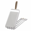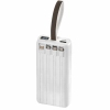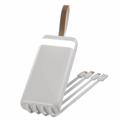 Зручний ремінець забезпечить користувачеві комфорт під час транспортування повербанку, надасть можливість закріпити на поясі чи рюкзаку. Корпус пристрою реалізований із заокругленими ребрами та приємною на дотик текстурованою поверхнею, виготовлений із міцного ABS пластику та полікарбонату. На задній панелі є 4 внутрішні кабелі з різними роз’ємами: USB, Type -C, Micro USB, Lightning. Для кожного кабелю передбачене заглиблення в корпусі. Повербанк має декілька портів: Type-C та USB. Ємність моделі – 20000 mAh.