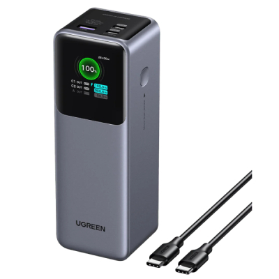 Ємність - 25000 mAh, електрохімічна система - Li-pol, Джерело заряду батареї - мережа 220 В, інтерфейси підключення (вихід) - 1 х USB, 2 x USB Type-C, вихідний струм - 1.5 A, 5 A, 3 A, 2 A, розмір - 160 х 80 х 20 мм, матеріал корпусу - силікон, металеві елементи, пластик, вага - 608 г, Колір - сірий
