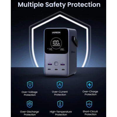 Вбудований захист від перевантаження по струму, перенапруги, перезарядження, перерозрядження, перегріву та короткого замикання робить батарею Ugreen 48000mAh 300W PB770 безпечною для вас та ваших пристроїв.