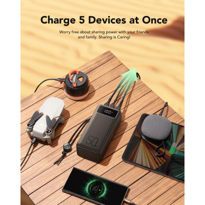Висока швидкість та універсальністьPowerbank підтримує передові технології Power Delivery 130W і Quick Charge 3.0, що гарантує надшвидке заряджання ноутбуків, смартфонів та інших гаджетів. Високий струм до 5A забезпечує стабільну подачу потужності, а декілька портів дозволяють одночасно заряджати до трьох пристроїв. Технологія USB-A Smart автоматично визначає оптимальний струм для підключених девайсів, підвищуючи ефективність та безпеку зарядки.