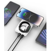 До павербанку YENKEE YPB 510 3 в 1 можна під'єднати до 3 різних пристроїв одночасно, щоб заощадити час. Максимальна потужність зарядки становить до 22,5 Вт для USB-A, 7,5 Вт для Type-C, 2,5 Вт для фліп-зарядного пристрою для Apple Watch і 15 Вт для бездротової зарядки з технологією MagSafe. Остання може відцентрувати телефон для ефективнішої зарядки. Інтелектуальний чіп оцінює ідеальну вихідну потужність і стежить за тим, щоб не допустити перезарядки.