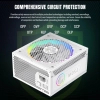 Повністю модульний блок живлення GameMax RGB 750G WH • Ефективність, сертифікована 80+ Gold: Досягає ефективності 90% або вище за типових навантажень, забезпечуючи нижче енергоспоживання, знижений шум та охолодження. • 140-мм вентилятор ARGB із синхронізацією: Забезпечує яскраві світлові ефекти та підтримує синхронізацію з материнськими платами ASUS, GIGABYTE, MSI та ASRock RGB для налаштування підсвічування. • Повністю модульна конструкція: 100% бездротове внутрішнє розташування друкованої плати усуває безлад кабелів для покращеного повітряного потоку та естетики. • Підвищена стабільність та надійність: Потужна одинарна лінія +12 В з високоякісними японськими конденсаторами забезпечує стабільне живлення відеокарт та компонентів ПК. • Розширений захист та надзвичайно тиха робота: Включає захист OPP/OVP/UVP/SCP/OCP/SIP у поєднанні з надзвичайно тихим 140-мм вентилятором для оптимального охолодження та мінімального шуму.