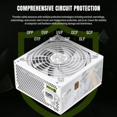 Ультрастабільний блок живлення GAMEMAX GP 850B 80+ Bronze з подвійним керуванням постійного струму, інтелектуальним вентилятором та преміальним теплорозсіюванням. • Схема подвійного керування постійного струму: має фазозсувні на 180 градусів виходи 3,3 В/5 В, що мінімізує вплив на вхід +12 В та зменшує пульсації для підвищення стабільності та точності напруги ±2%. • Преміальні тайванські конденсатори: використовуються високоякісні конденсатори TEAPO для надійної роботи при повному навантаженні та стабільної подачі живлення. • Вентилятор з інтелектуальним керуванням температурою 14 см: автоматично регулює швидкість вентилятора залежно від навантаження, балансуючи енергоефективність та низький рівень шуму в роботі. • Двостороння друкована плата з верхнім SMD-розташуванням: одностороння конструкція компонентів (без нижніх компонентів) підвищує стабільність та точність виготовлення. • Покращене теплорозсіювання: екструзія алюмінію та оптимізована архітектура теплорозсіювання кристалів забезпечують ефективне охолодження для тривалої роботи.