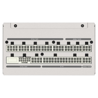 Super Flower застосовує подвійні 8-контактні роз’єми на модульній панелі, які переходять у 12VHPWR (12+4 pin) кабель на стороні відеокарти. Це рішення підвищує безпеку, зменшує ризик пошкодження кабелю при сильному згині та гарантує стабільне живлення навіть у конфігураціях із високим споживанням енергії.