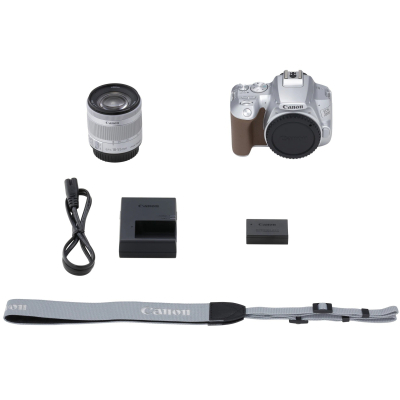 Тип матриці - КМОП (CMOS), стабілізація - оптична, розмір матриці - 22.3 х 14.9 мм, число ефективних пікселів - 24.1 Mpx, максимальна діафрагма - f/3.6-5.6, Макс. роздільна здатність запису відео - 3840x2160, тип видошукача - Пентадзеркало, розмір ЖК-екрану - 3", тип карток пам'яті - SD/SDHC/SDXC, бездротовий зв'язок - Wi-Fi, Bluetooth, тип живлення - LP-E17, Колір - сріблястий