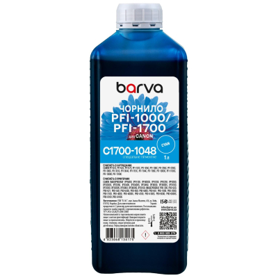 Тип - сумісний, тип чорнила - пігментні, сумісність з пристроями бренду - Canon, Колір - Cyan, ємність - 1 л