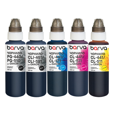 Тип - сумісний, тип чорнила - пігментні, водорозчинні, сумісність з пристроями бренду - Canon, Колір - набір (set), ємність - 5 х 100 мл