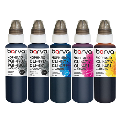 Тип - сумісний, тип чорнила - пігментні, водорозчинні, сумісність з пристроями бренду - Canon, Колір - набір (set), ємність - 5 х 100 мл