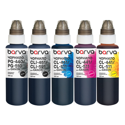 Тип - сумісний, тип чорнила - пігментні, водорозчинні, сумісність з пристроями бренду - Canon, Колір - набір (set), ємність - 5 х 100 мл