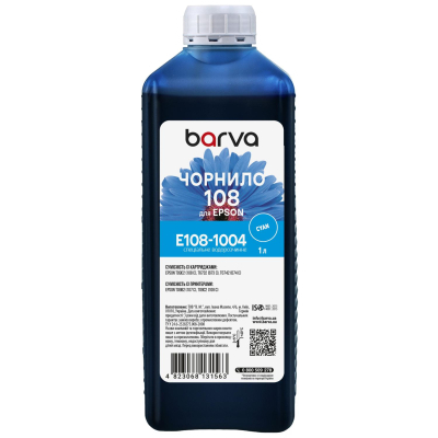 Тип - сумісний, тип чорнила - водорозчинні, сумісність з пристроями бренду - Epson, Колір - Cyan, ємність - 1 л
