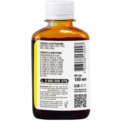 Більшість з нас чули, що на відміну від лазерної техніки, яка формує зображення за допомогою тонера, струменева техніка використовує для друку спеціальні чорнила (краска для принтерів). Чорнило для Epson T6934 спеціальне 180 мл, пігментне, жовте Barva (E69-943) використовується переважно для заправки ПЗК та СБПЧ. Чорнила E69-943 Barva мають офіційну гарантію від виробника – АТ000953. При виборі чорнила для принтерів Вам також необхідно звернути увагу на колір картриджа, який плануєте заправляти. Дані чорнила Barva мають колір – yellow (жовтий). Виробник гарантує безперебійну роботу чорнил протягом всього терміну використання, який складає – 2 роки. Тип чорнил E69-943 Barva – Пігментні. Українська компанія ТОВ «В.М.» займається виробництвом чорнил під торговою маркою Barva вже багато років. На базі власної лабораторії відбувається як розробка нових формул, так і неперервний контроль якості продукції, що випускається. При виробництві чорнил виробник слідує стандартам ISO 9001:2015 та ISO 14001:2015. Чорнила для принтера Epson ТМ Barva повністю сумісні не тільки з чорнилами ТМ Patron, але й з чорнилами інших виробників. Для досягнення оптимального результату в передачі кольору та стійкості до світла ми рекомендуємо використовувати комбінацію – Фотопапір для струменевого друку Barva + чорнила Barva. Дана фарба для принтера Epson Barva має фасовку – 180 мл: Ви можете купити Чорнило для Epson T6934 спеціальне 180 мл, пігментне, жовте Barva (E69-943) в нашому інтернет-магазині з доставкою по Києву та всій Україні. Фасовка чорнил Barva 180 гр./180 мл буде зручною для користувачів, якім необхідно багато друкувати – в даному випадку вартість чорнил буде нижчою, ніж в більш маленьких фасовках (90 гр. або 100 мл).З даним флаконом можлива заправка картриджа, а також СБПЧ чи ПЗК;