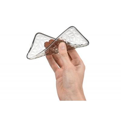 Прозорий чохол з сірим відтінком з міцного та гнучкого матеріалу TPU. Зовнішня сторона гладка, а геометричний 3D-малюнок внутрішньої частини імітує огранку дорогоцінного каміння. Товщина - 1,3 мм. Чохол поставляється в ZIP-пакеті.