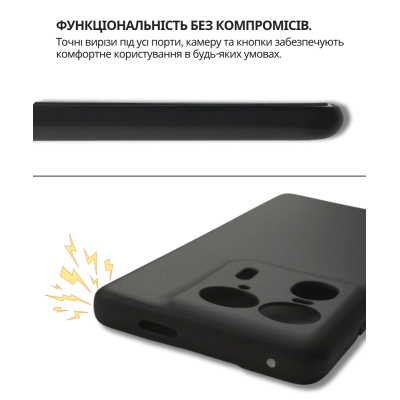 Чохол легко встановлюється, щільно прилягає до поверхні смартфона, не залишаючи повітряних зазорів, які могли б накопичувати пил, бруд або вологу. Легкий і непомітний, він не додає зайвого об'єму чи ваги вашому пристрою, забезпечуючи надійний захист від ударів, пошкоджень і вологи.