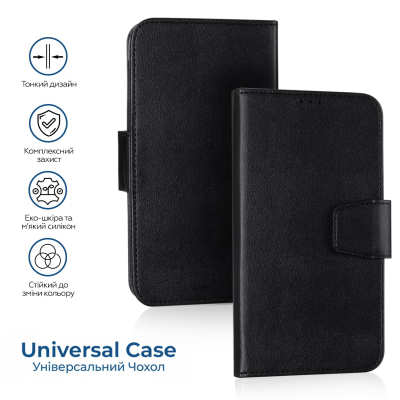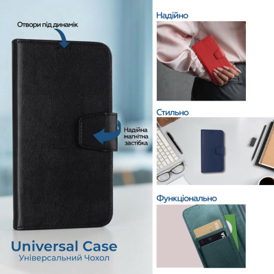сумісність з моделями - універсальний, Тип чохла для телефону - книжка, Призначення - універсальний, Колір - чорний