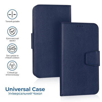 сумісність з моделями - універсальний, Тип чохла для телефону - книжка, Призначення - універсальний, Колір - синій