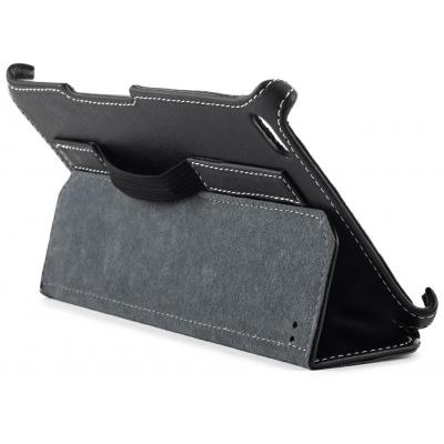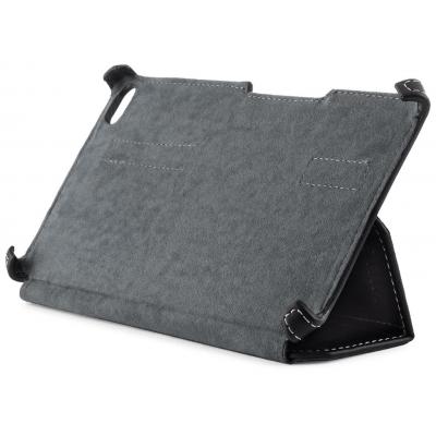 Чохол Vinga для планшетів Lenovo Tab 4 7 TB-7304I black виконаний з міцної штучної шкіри матово-чорного кольору. Він кріпиться до корпусу гаджета за допомогою зручної рамки-тримача. Але ви цілком можете використовувати дану модель і в якості підставки, адже виробники зробили її конструкцію багатофункціональною. Склавши бокові сторони виробу спеціальним чином і зафіксувавши їх один на одному, ви отримуєте зручне пристосування для установки планшета на горизонтальні поверхні. Головним матеріалом виготовлення даного чохла служить високоякісний шкірозамінник, ключовою перевагою якого є практичність. Він недорого коштує, і при цьому може бути для корпуса досить надійним бар'єром від прямого попадання води, контакту з нагрітими або гострими об'єктами. Крім того, даний матеріал гасить частину сили удару в випадках, коли пристрій падає на тверді поверхні. Чохол має структуру зручної обкладинки, на зразок тих, які можна бачити на книгах і блокнотах. Чорні лицьові сторони прикрашені білими пунктирними лініями, створеними за допомогою прострочки. Внутрішня сторона вироби має м'яку фізичну структуру і має яскраво виражений сірий колір.