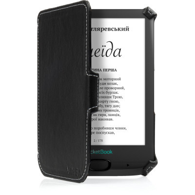 Тип - обкладинка, Сумісність з моделями - PocketBook 606, PocketBook 628, PocketBook 633, діагональ - 6, Спосіб кріплення - обкладинка, спосіб закриття - защіпка, Матеріал - штучна шкіра, чорний