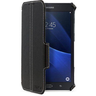 Чохол Vinga для планшетів Samsung Tab A 7 SM-T285 black виготовлений з якісної штучної шкіри. Володіючи досить високою міцністю на розрив і стійкістю до дії колючих і ріжучих предметів, вона надійно захистить ваш гаджет від подряпин, а також може дещо зменшити силу удару при падінні. Зрозуміло, від серйозних ушкоджень дана модель врятувати нездатна, але вона все одно знижує можливі збитки на певний відсоток, в порівнянні з наслідками, які спричинив би за собою контакт голого корпусу з твердою поверхнею. Одним з важливих переваг цього чохла є його багатофункціональність: завдяки універсальній конструкції його можна скласти в зручну підставку. Це дозволяє вам з максимальним комфортом працювати з пристроєм, встановивши його прямо перед собою на столі. На одній зі сторін обкладинки розміщено отвір під вбудовану відеокамеру, а на іншій - перфорація, що забезпечує вільну циркуляцію повітря, коли планшет перебуває в закритому вигляді, а також створює умови для безперешкодного поширення звуків з динаміка. Строгий дизайн підкреслить вашу симпатію до ділового стилю.