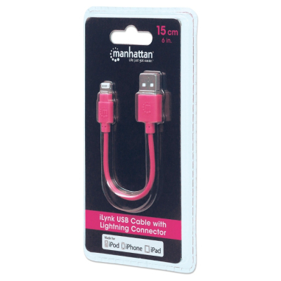 Дата кабель iPhone 5/6/Ipad 4, 0.15m pink Manhattan Intracom (394420)